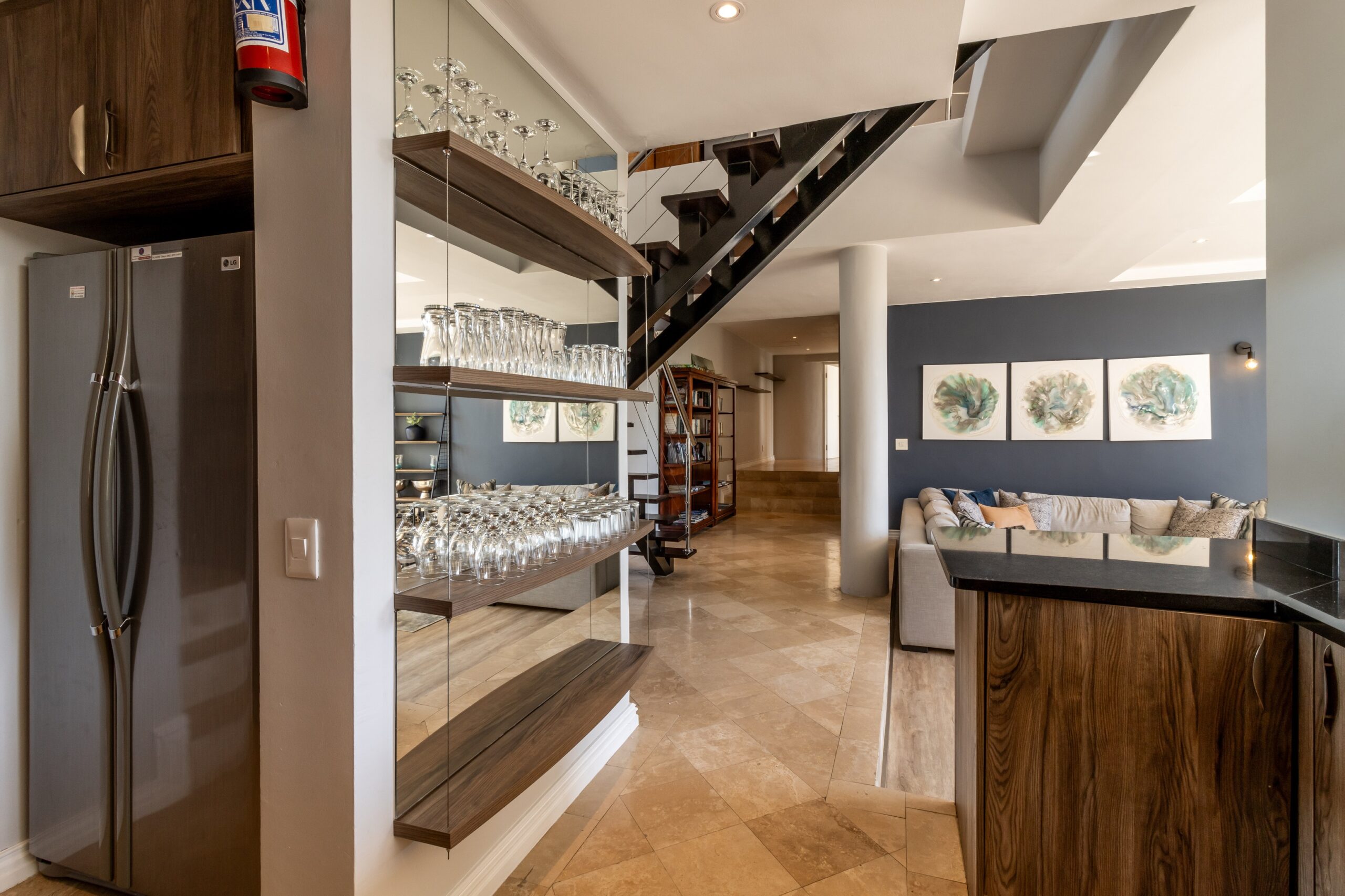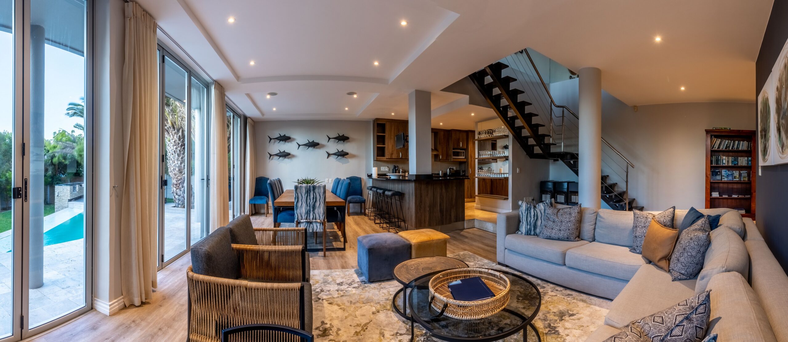 With spacious bedrooms and living areas including five en-suite bathrooms, One on Houghton comfortably sleeps 10 people. The villa is serviced daily with a fully equipped kitchen and external dining area.